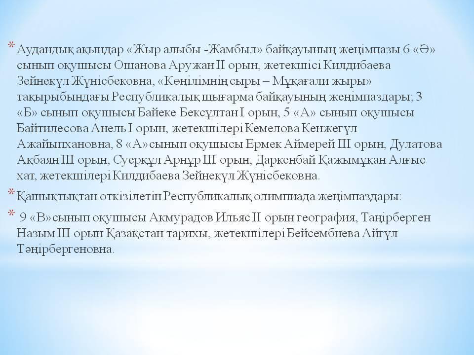 Олимпиада жүлдегерлері » Көкөзек орта мектебі
