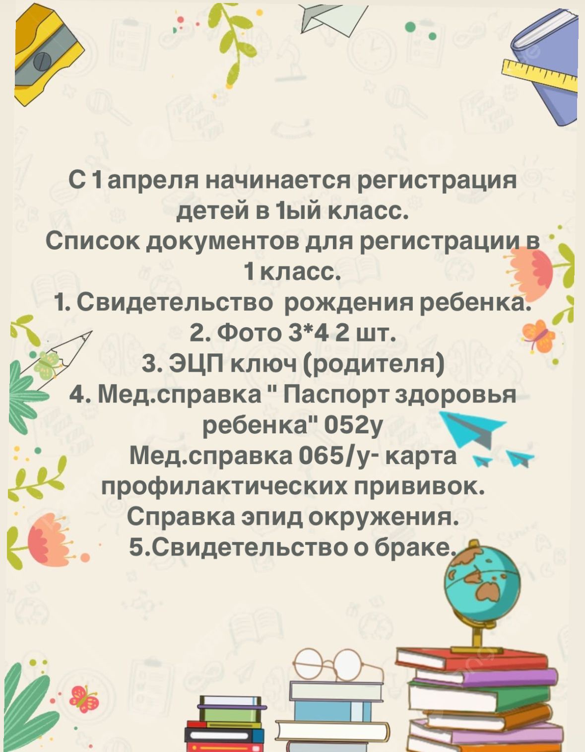 С 1 апреля начинается регистрация детей в 1ый класс.