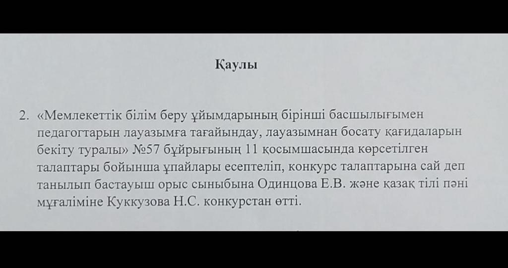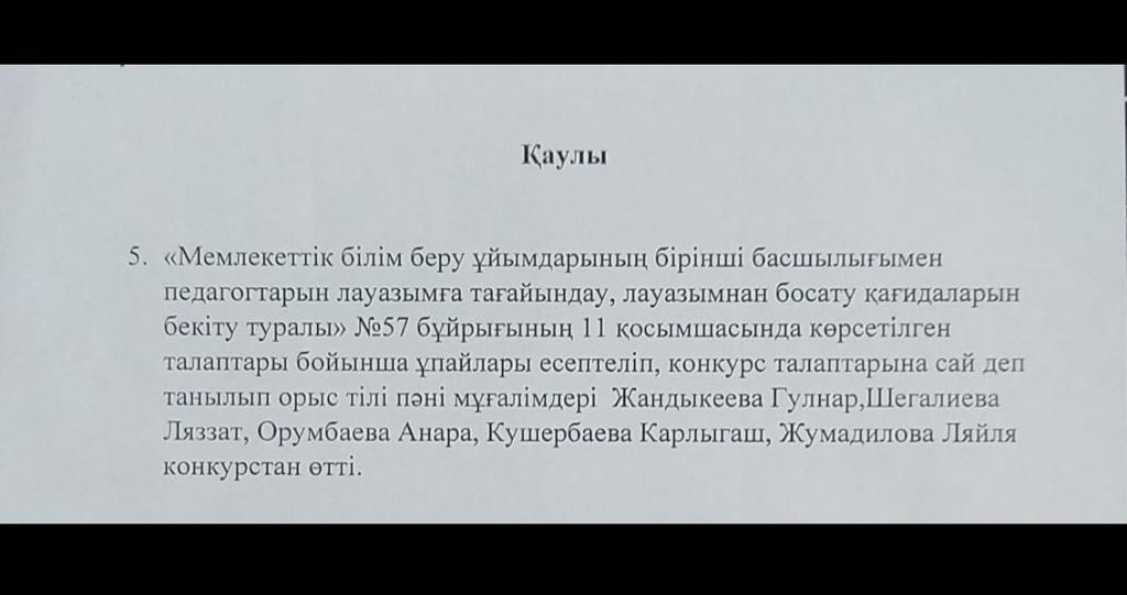 2022 ж тамыз-қазан айының аралығында бос лауазымға өткізілген конкурс нәтижелері.