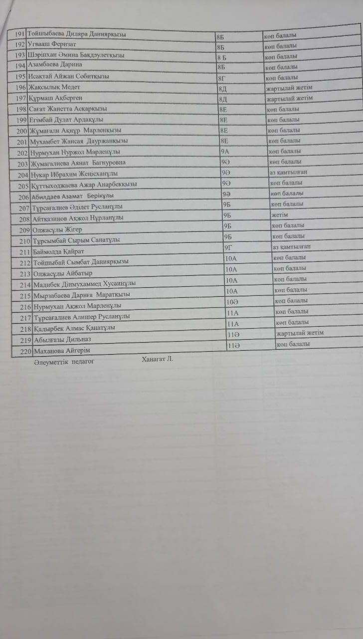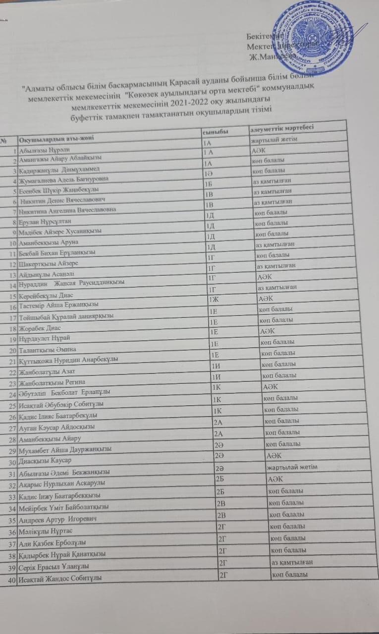 Тамақтанатын оқушылар тізімі » Көкөзек орта мектебі