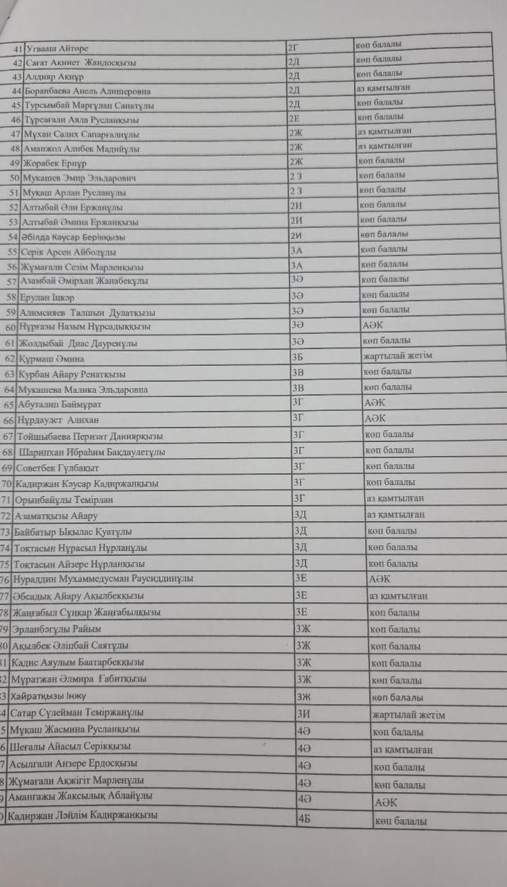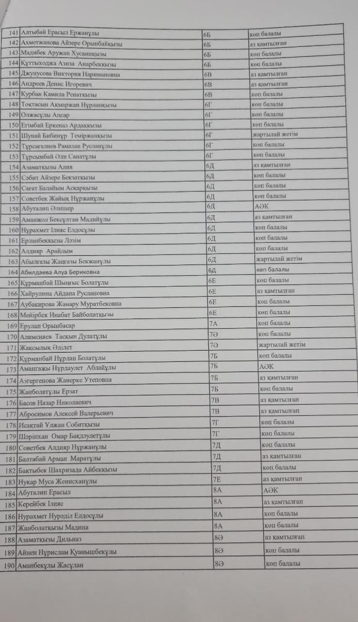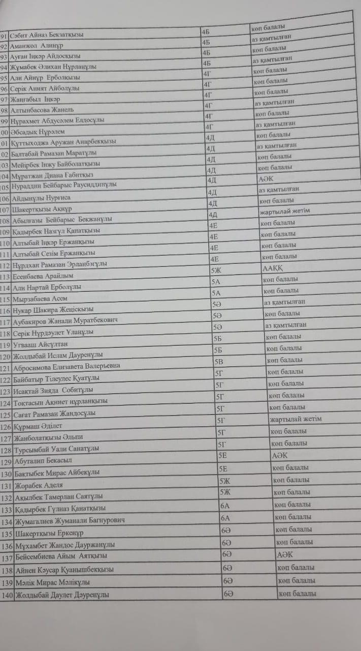 » » Тамақтанатын оқушылар тізімі