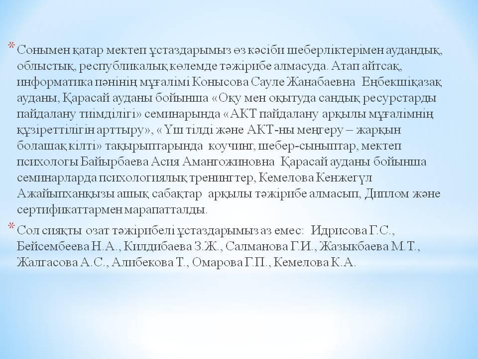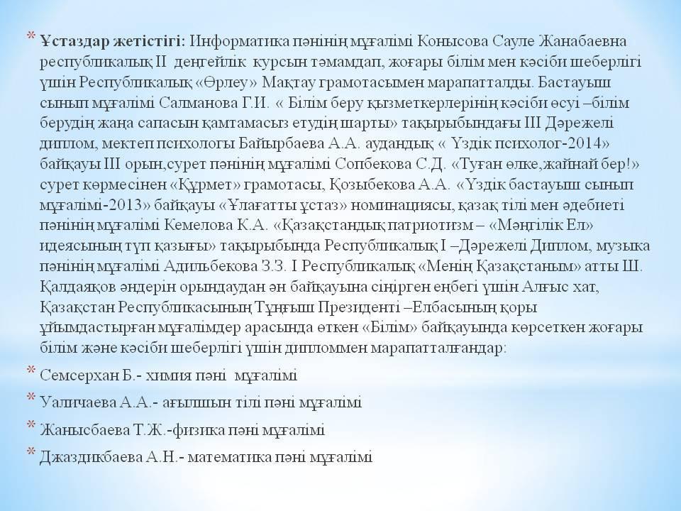 Музыкалық жетістіктер » Көкөзек орта мектебі